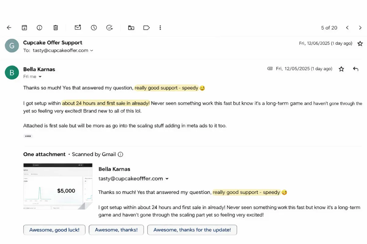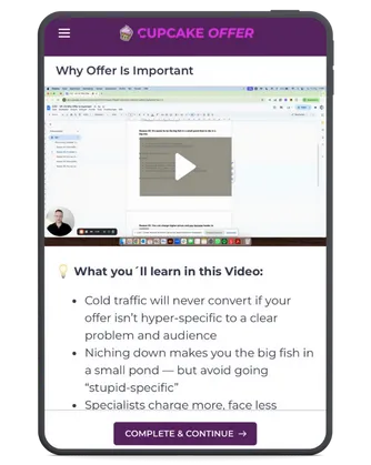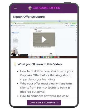 If you binge the course, you could have your Cupcake Offer crafted in a single afternoon. Most users start seeing traction within days — not weeks — because this stuff is plug-and-play.
